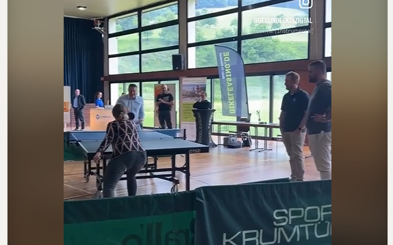 Im Mittelpunkt standen die Themen gesunde Ernährung, Ergonomie am Arbeitsplatz sowie Sport und Entspannung. Der Tag selbst stand unter dem Motto: „Ihre Gesundheit, unser Ziel“. Das Besondere: Der Besuch war für die Mitarbeitenden freiwillig und Teil ihrer Arbeitszeit, berichtet Janina Stunder von GESUNDES KINZIGTAL. Neben dem Gesundheitsdienstleister aus Hausach waren auch die Berufsgenossenschaft Holz und Metall, die drei Krankenkassen AOK, Barmer und Techniker, ein Fitnessstudio und die Apotheke am Kurgarten in der Halle aktiv. In deren Zentrum lud eine Tischtennisplatte zum spontanen Spiel.