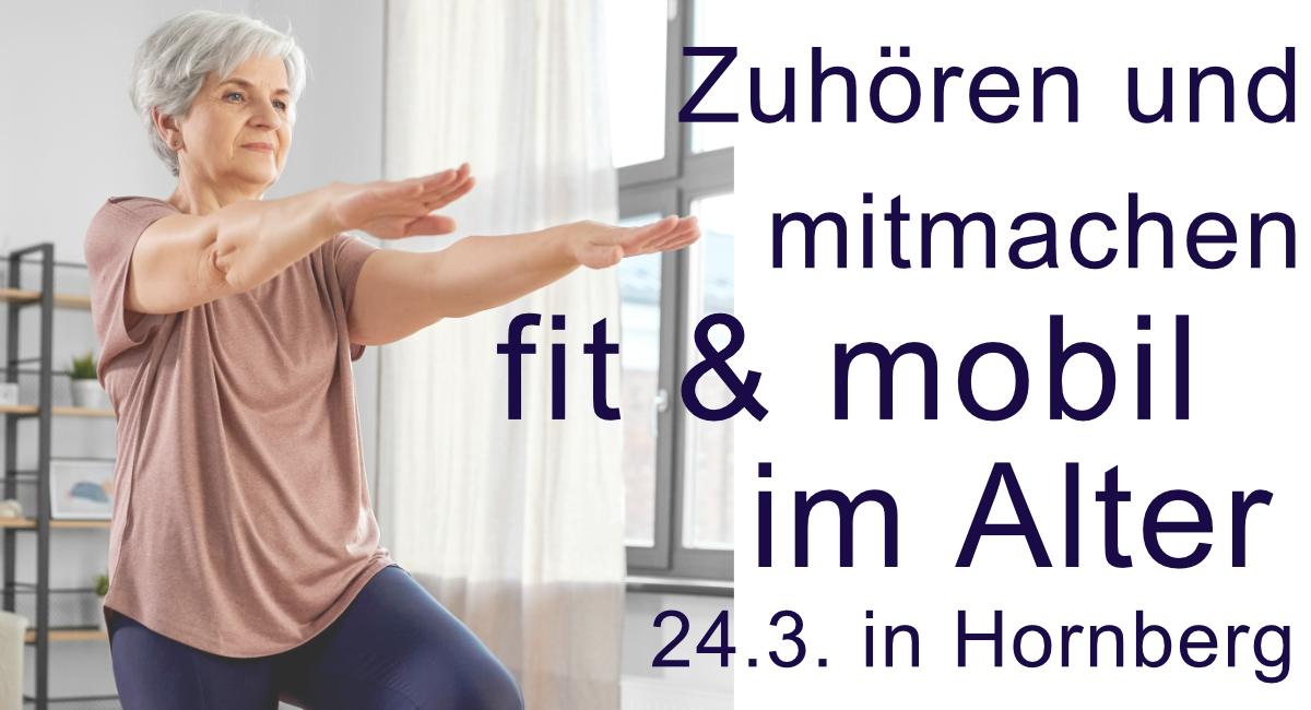 Es geht um Wissen und Können: Beim Vortrag "fit & mobil im Alter" werden nicht nur spannende und nützliche Informationen rund ums gesunde Altern weitergegeben, sondern es wird auch ganz praktisch. Referentin Janina Stunder zeigt leichte Übungen, die sich in den Alltag integrieren lassen und dazu beitragen, dass die eigene Beweglichkeit unterstützt wird. Sportkleidung wird nicht benötigt, auch andere Hilfsmittel sind nicht gefragt. Koordination und Stabilität rücken in den Fokus.